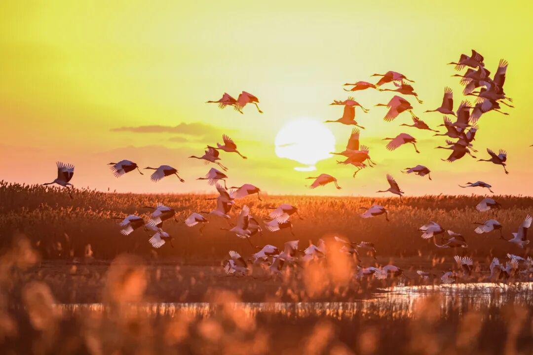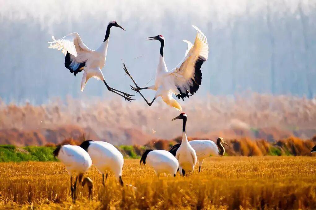 每年秋冬,成群的丹顶鹤从北方飞来