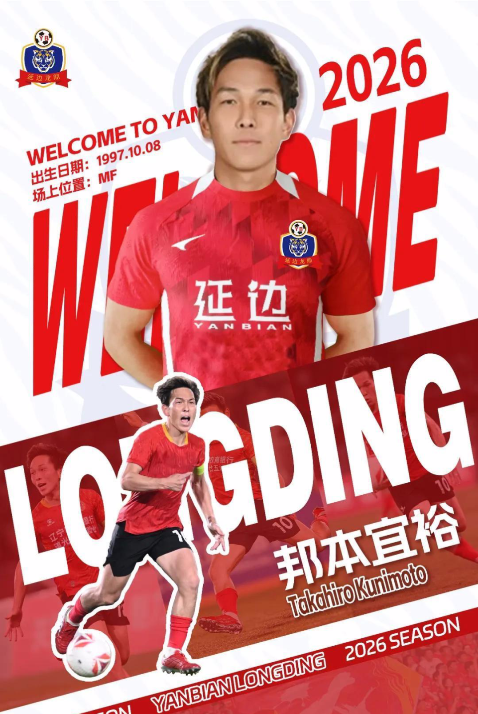 在无缘留守辽宁铁人征战中超后,邦本宜裕又和延边龙鼎达成加盟协议。他的到来,原本让上赛季中甲第4名的延边龙鼎,增添重要的冲超砝码。